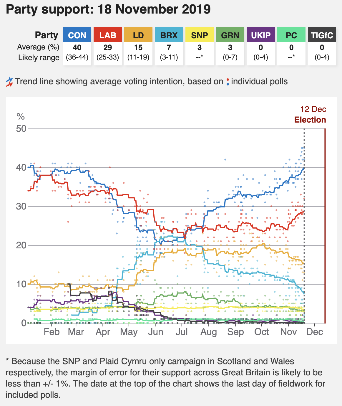 Source: General election poll tracker: How do the parties compare?, 18 Nov 2019.