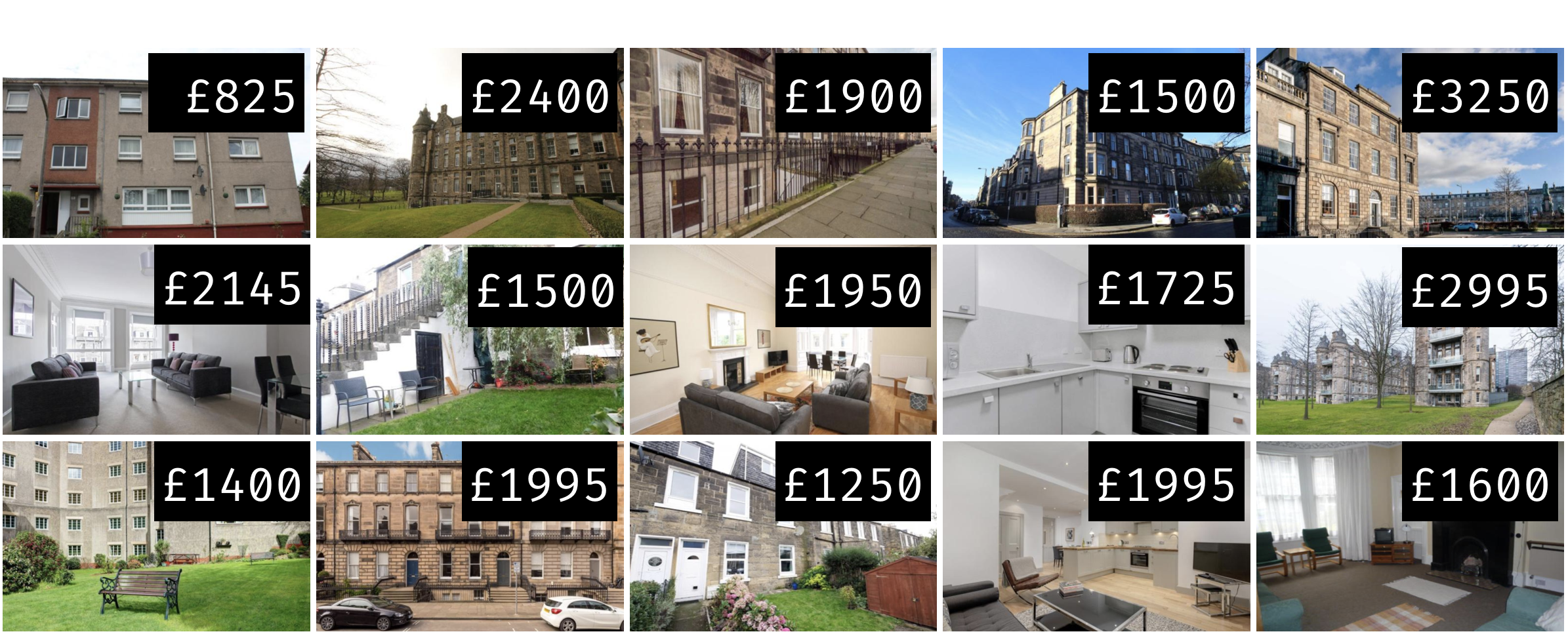 Fifteen 3 BR flats in Edinburgh were randomly selected on rightmove.co.uk.