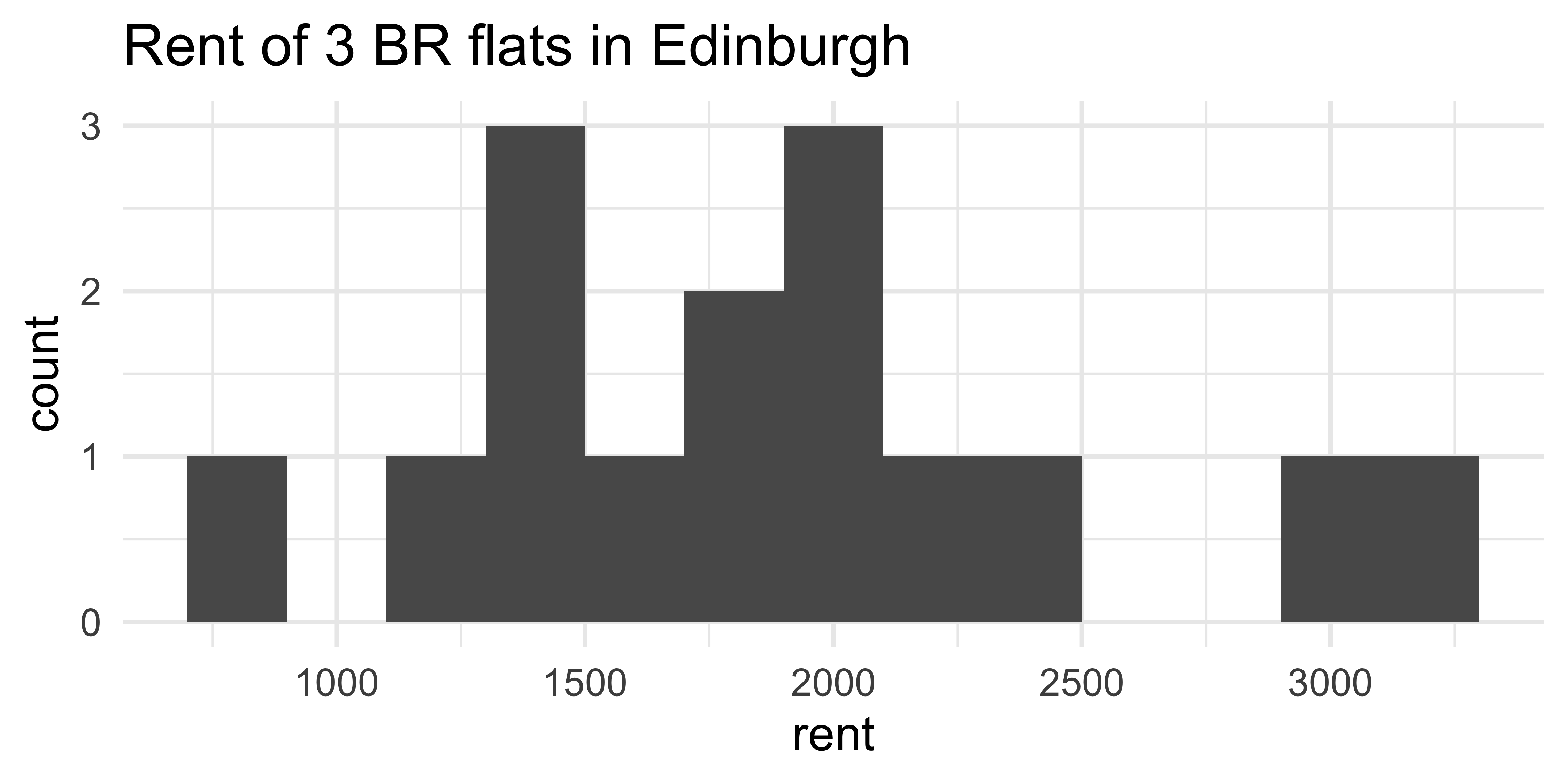 ## # A tibble: 15 x 4## flat_id rent title address ## <chr> <dbl> <chr> <chr> ## 1 flat_01 825 3 bedroom apartment to re… Burnhead Grove, Edinburgh, Mid…## 2 flat_02 2400 3 bedroom flat to rent Simpson Loan, Quartermile, Edi…## 3 flat_03 1900 3 bedroom flat to rent FETTES ROW, NEW TOWN, EH3 6SE ## 4 flat_04 1500 3 bedroom apartment to re… Eyre Crescent, Edinburgh, Midl…## 5 flat_05 3250 3 bedroom flat to rent Walker Street, Edinburgh ## 6 flat_06 2145 3 bedroom flat to rent George Street, City Centre, Ed…## 7 flat_07 1500 3 bedroom flat to rent Waverley Place , Edinburgh EH7…## 8 flat_08 1950 3 bedroom flat to rent Drumsheugh Place, Edinburgh ## 9 flat_09 1725 3 bedroom flat to rent Crighton Place, Leith, Edinbur…## 10 flat_10 2995 3 bedroom flat to rent Simpson Loan, Meadows, Edinbur…## 11 flat_11 1400 3 bedroom flat to rent 42, Learmonth Court, Edinburgh…## 12 flat_12 1995 3 bedroom apartment to re… Chester Street, Edinburgh, Mid…## 13 flat_13 1250 3 bedroom duplex to rent Elmwood Terrace, Lochend, Edin…## 14 flat_14 1995 3 bedroom apartment to re… Great King Street, Edinburgh, …## 15 flat_15 1600 3 bedroom ground floor fl… Roseneath Terrace,Edinburgh,EH9